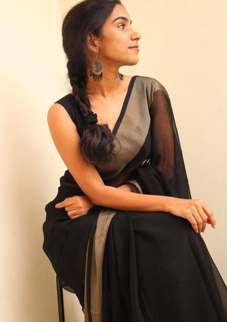 As an industry expert, I present to you the BLACK 250, a beautiful BLACK SAREE. Made with high-quality materials, it exudes elegance and sophistication. With its classic color and luxurious texture, this saree is perfect for any formal occasion. Upgrade your wardrobe with this must-have piece and make a statement wherever you go.