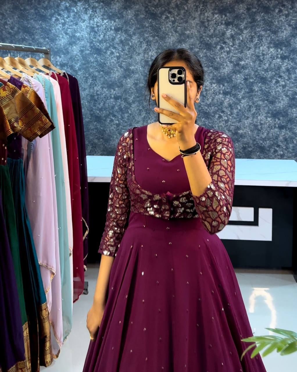 Introducing the 1404-SEQUENCE GOWN from our new premium collection. Made with high-quality georgette fabric and net kotti, adorned with intricate embroidery. Elevate your style with this luxurious gown.