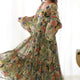 Step into summer festivities and weddings with this 267-MEHNDI ANARKALI. Made with pure soft fox georgette floral print fabric, this maxi provides both comfort and style. Its full balloon sleeves, kali, and gathering bottom add to the elegant look. The gown has a 6-meter fully flared design, perfect for any occasion.