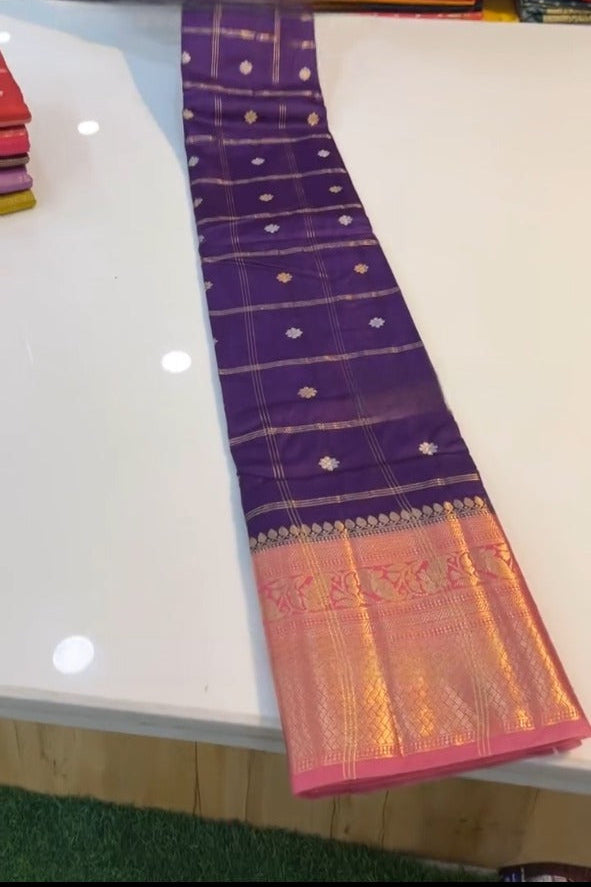 Saree Work : Zari Woven Border With Traditional Checks And Butti Work