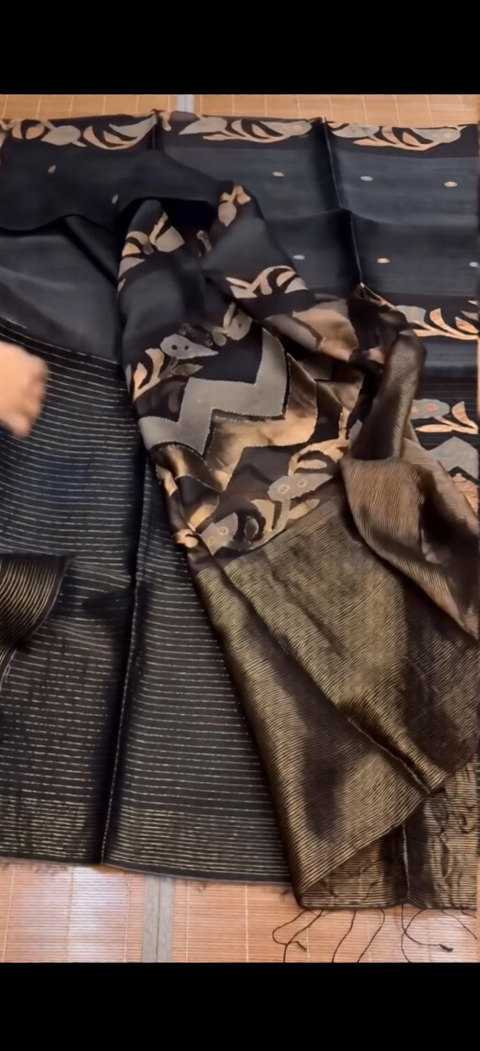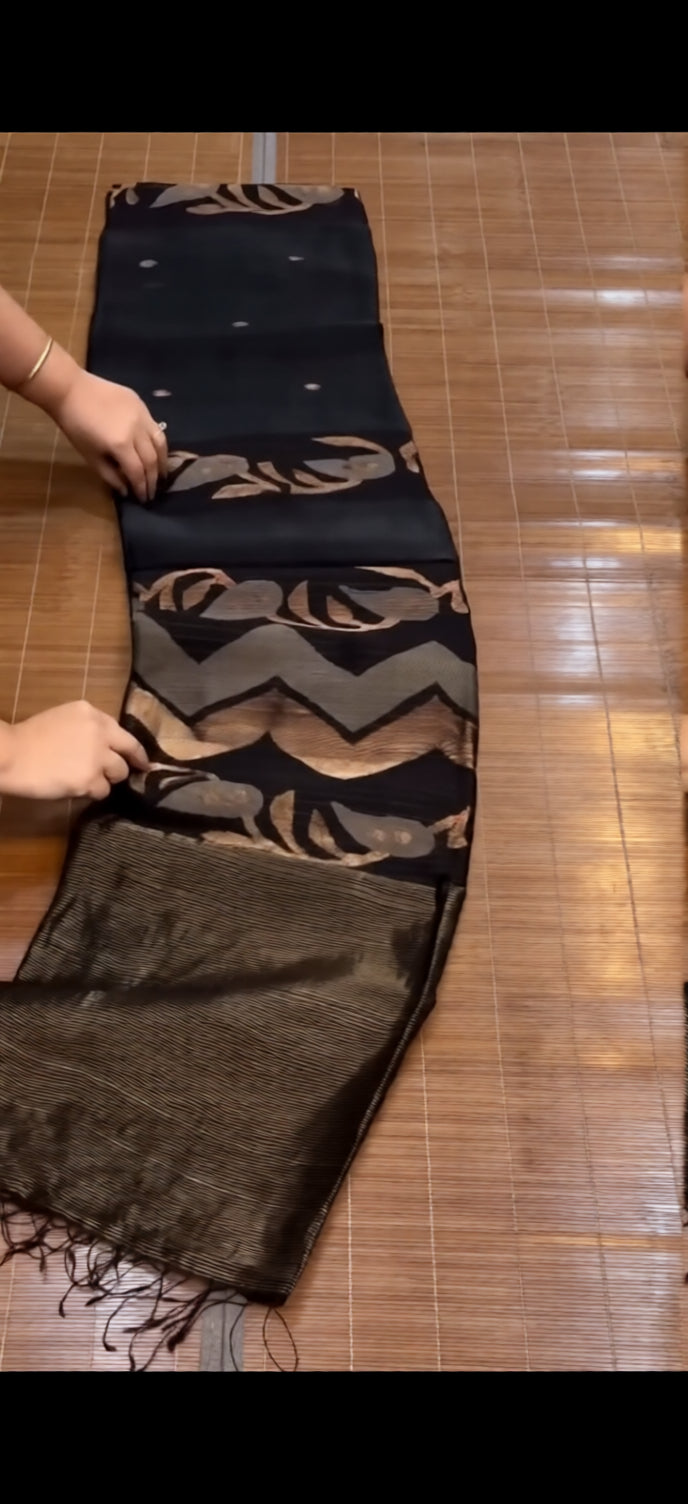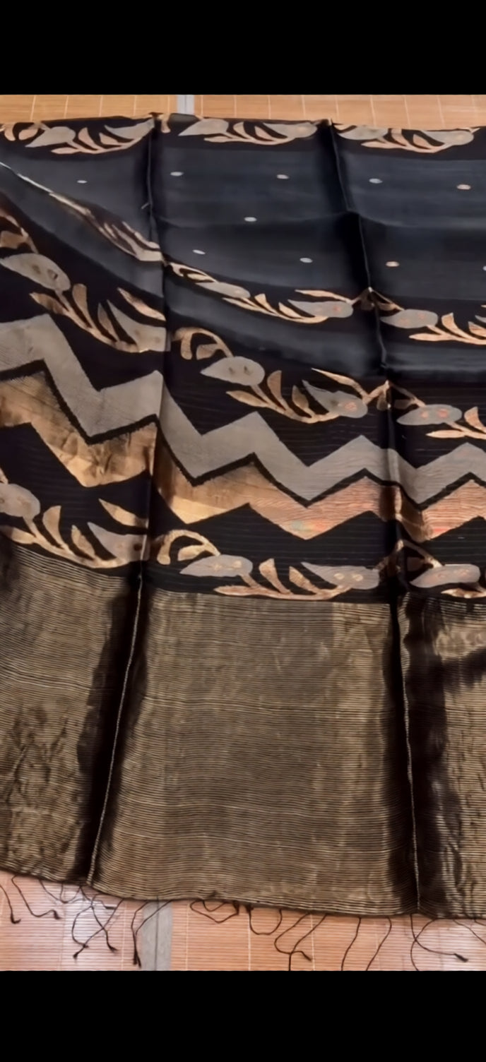 Saree Work : Woven Jamdani Motifs With Zigzag And Floral Border Design