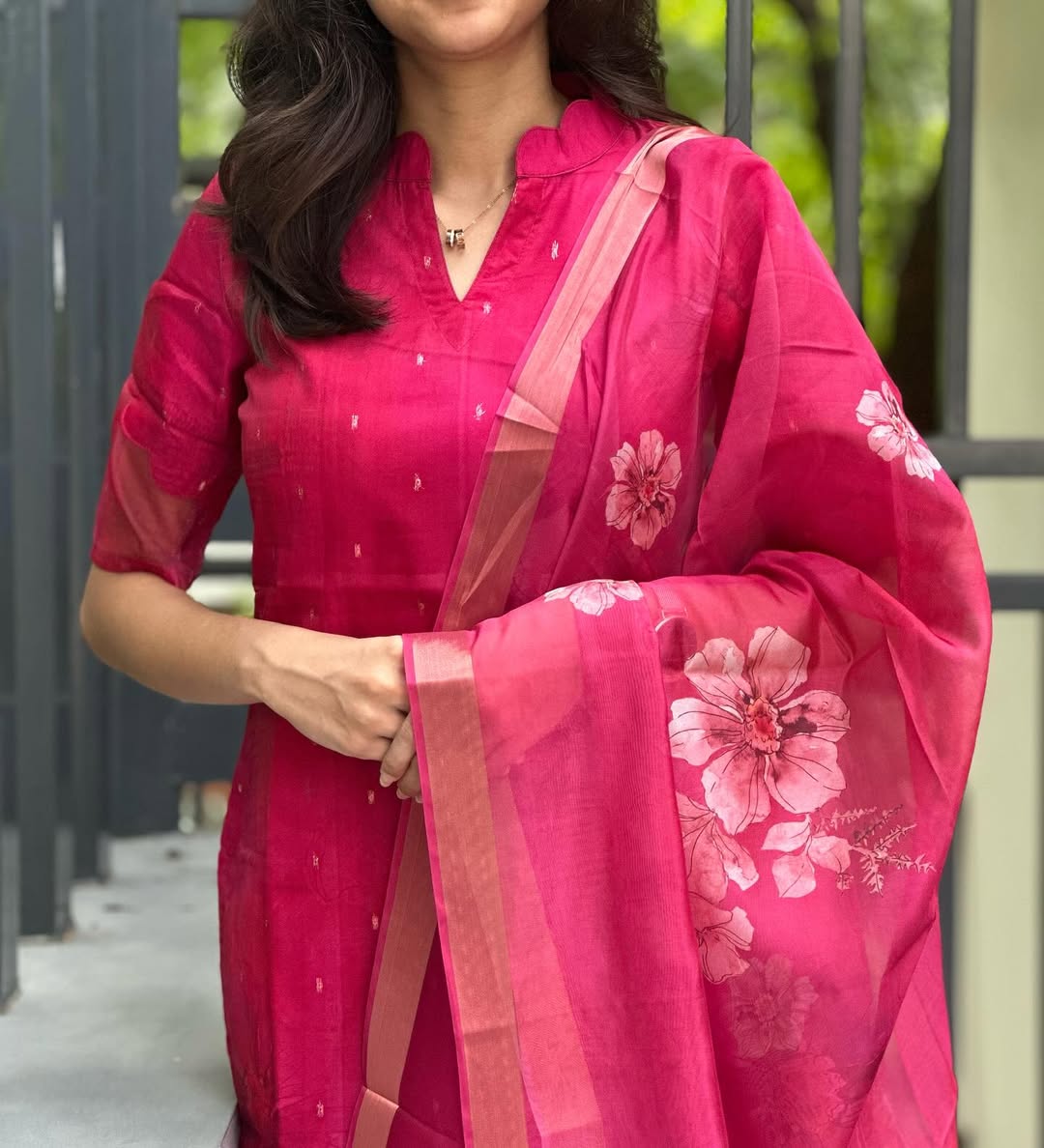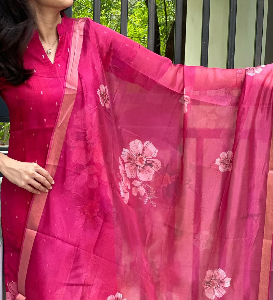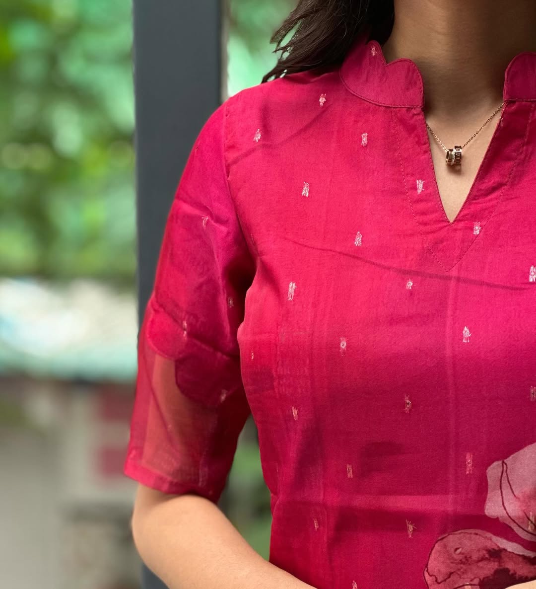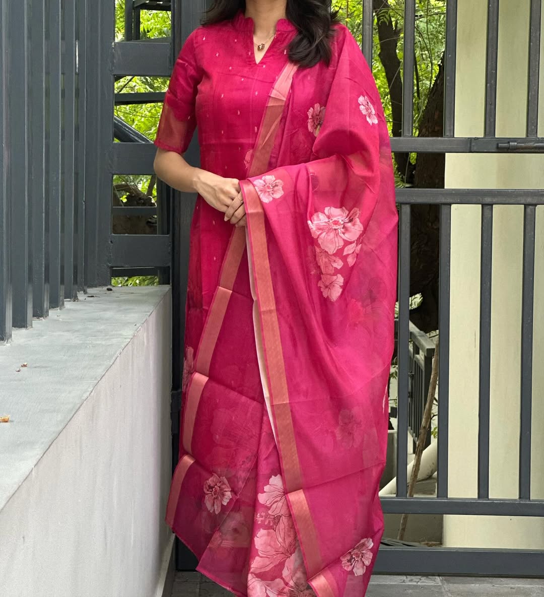 Introducing our stunning Rani Pink Organza Kurti with Dupatta! This beautiful piece is perfect for any occasion, adding a touch of elegance and sophistication to your ensemble. Made with high-quality organza fabric, it boasts a delicate texture and luxurious shine. Elevate your style with this statement piece today.
